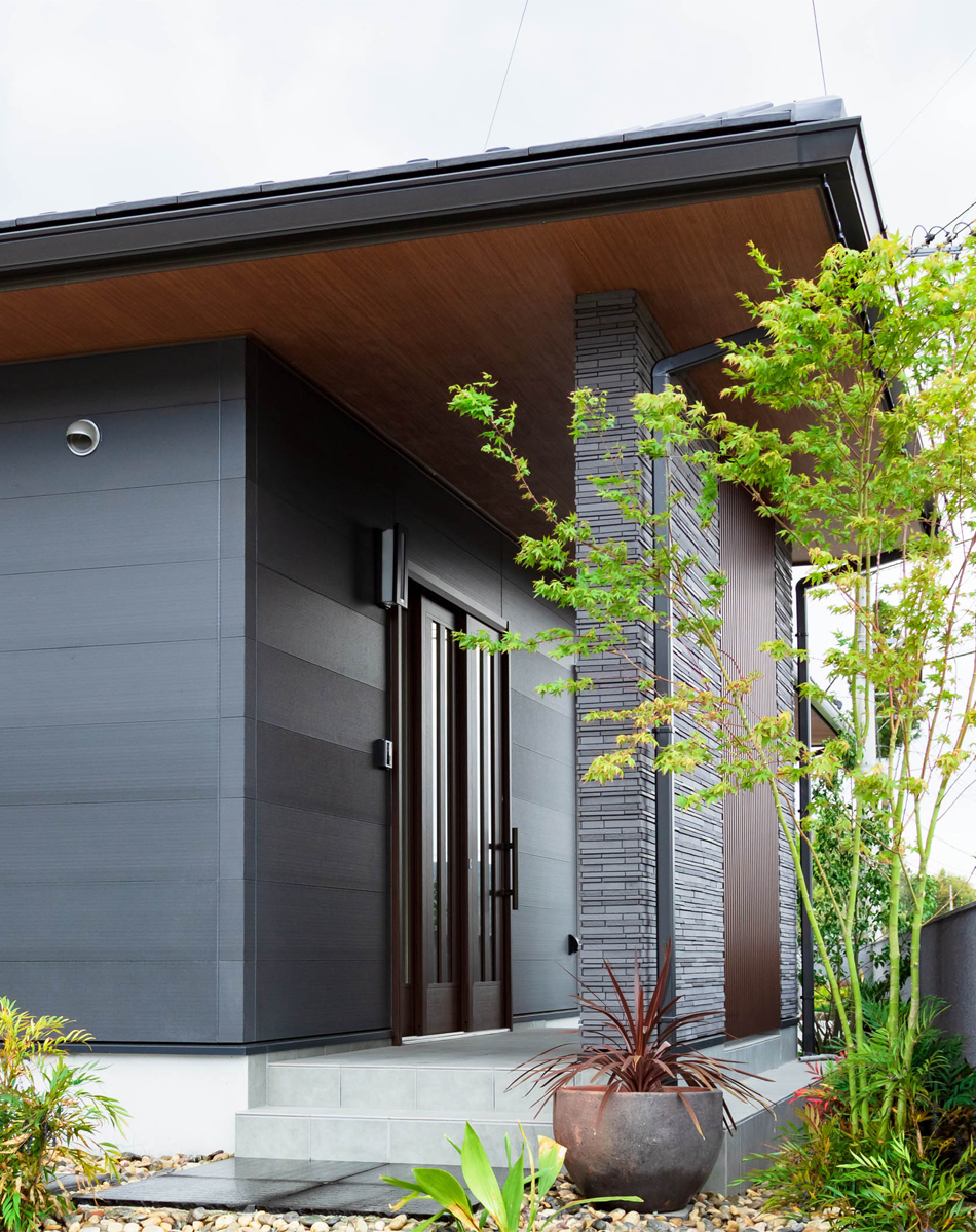 モノトーンの瓦・陶板壁材で和風モダン邸宅をクールにまとめる