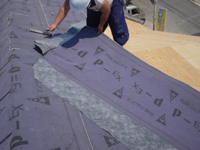破けにくく、釘穴シール性も、優れているゴムアスルーフィングで雨漏りを防ぎます。